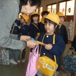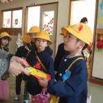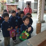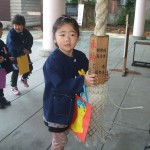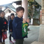 自分たちで作ったお祝いの袋を持って、お参りをした後、