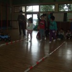 年少さんは補助のコーンから手を離して滑る練習をしました。