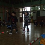 お遊戯「妖怪体操第一」とマスゲーム「ぽかぽかてくてく」を団地の皆さんに披露しました。