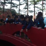 小春日和の暖かい日差しの中で、子ども達はきれいな鯉を見たり