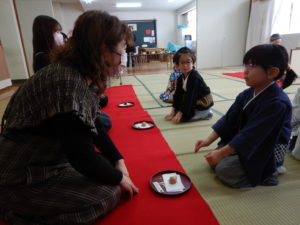 お茶の飲み方、お菓子の食べ方など、初めてのことばかりでしたが、とても楽しかったようです。